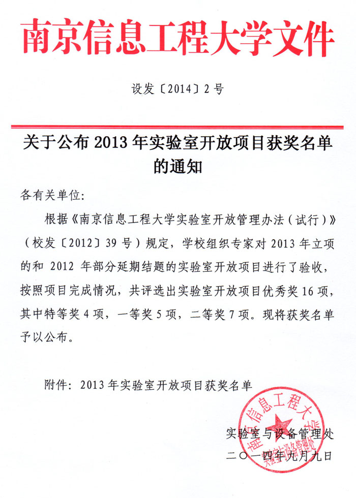 上一条:关于公布2013年实验室开放项目优秀组织奖获奖名单的通知 下一条:关于公布2013年实验室开放项目结题项目的通知