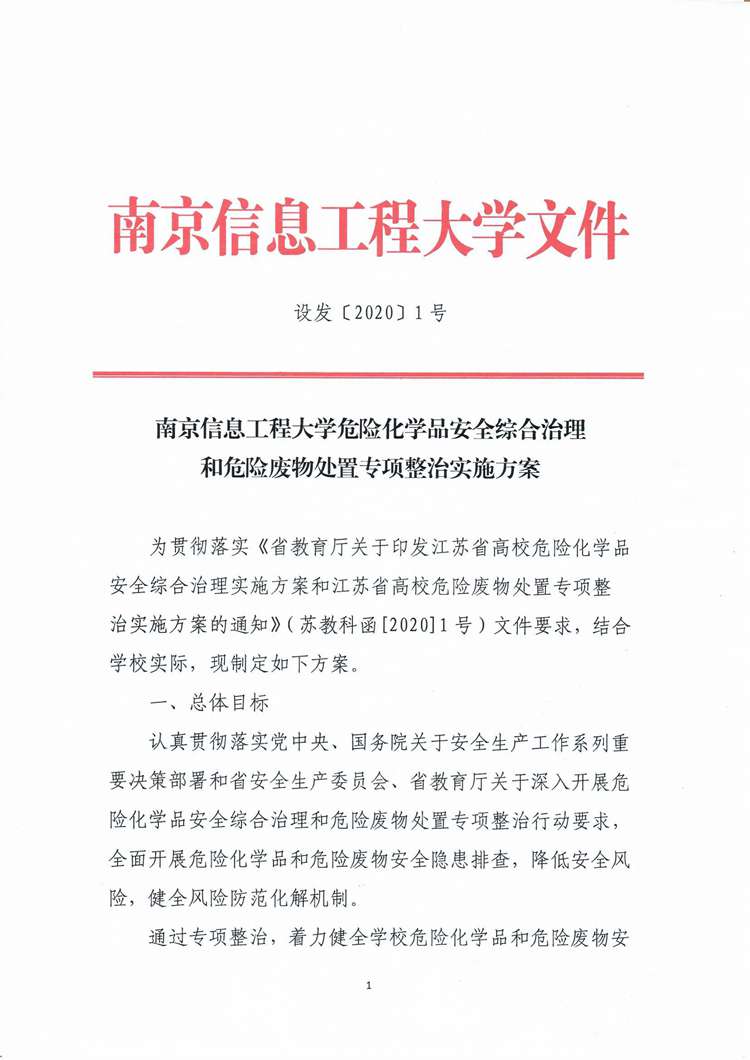 上一条:设发〔2020〕2号 关于成立南京信息工程大学辐射安全工作领导小组的通知 下一条:关于做好2020年寒假期间实验室安全工作的通知