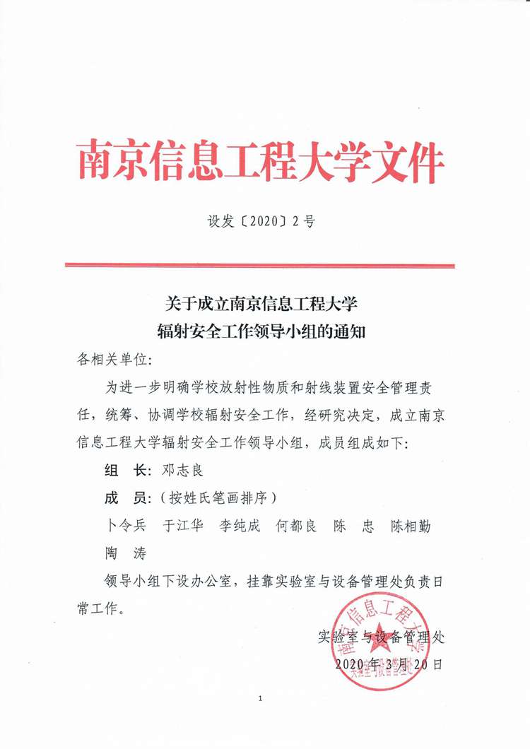 上一条:设发〔2020〕4号 关于成立南京信息工程大学危险化学品安全综合治理及危险废物处置专项整治领导小组的通知 下一条:设发〔2020〕1号 南京信息工程大学危险化学品安全综合治理和危险废物处置专项整治实施方案